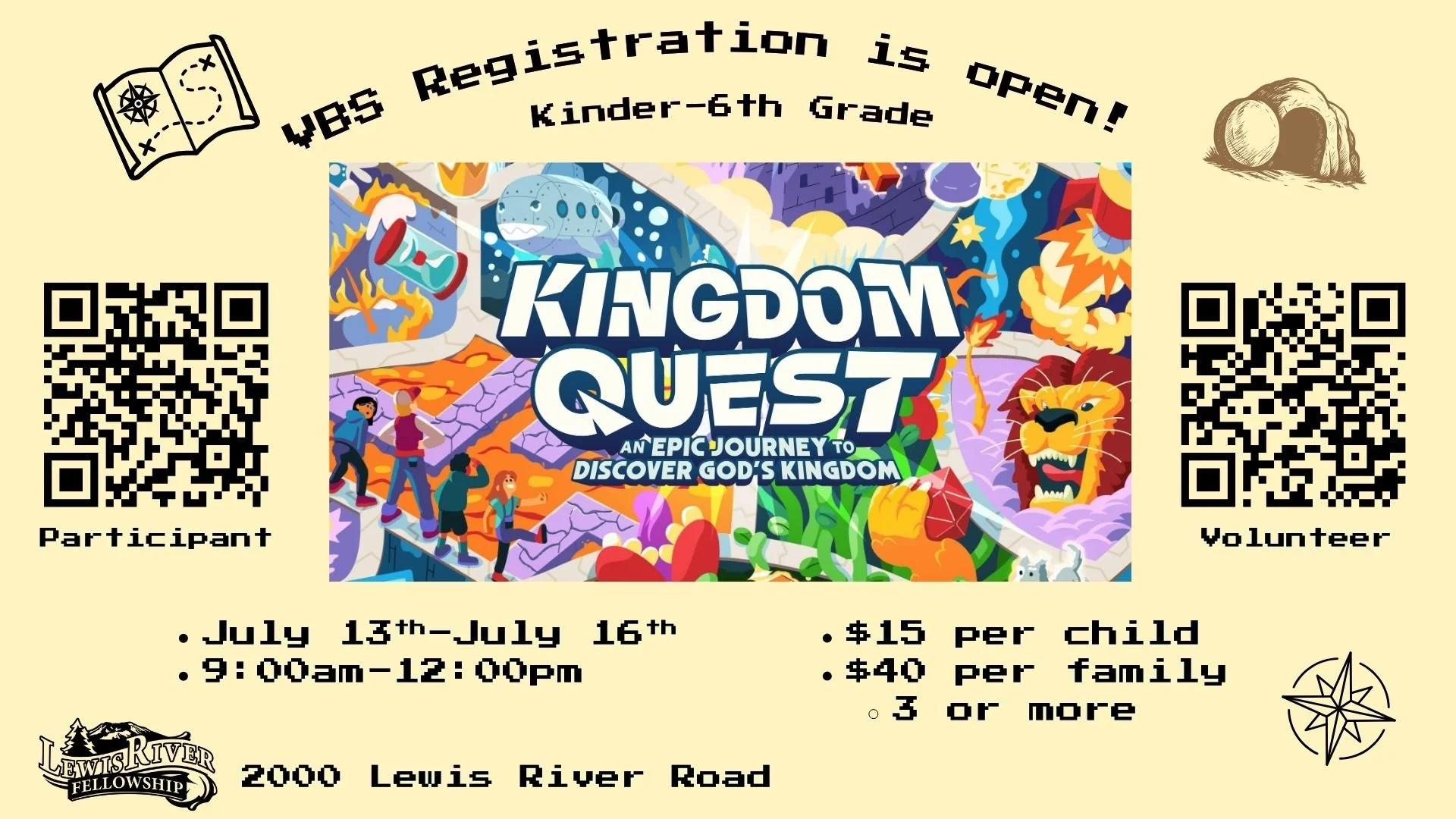 Join us for Worship Sundays @ 10:00am Click for VBS Participant Click for VBS Participant Click for VBS Volunteer Click for VBS Volunteer Weekly Sermons available on:Facebook and YouTube.